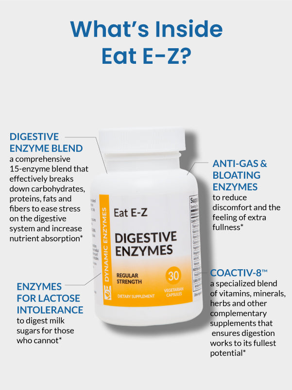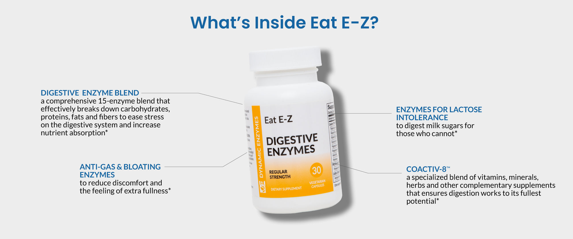 Banish the effects of a sluggish digestive system. Try our 15-enzyme broad-spectrum blend to help your body break down every kind of food.